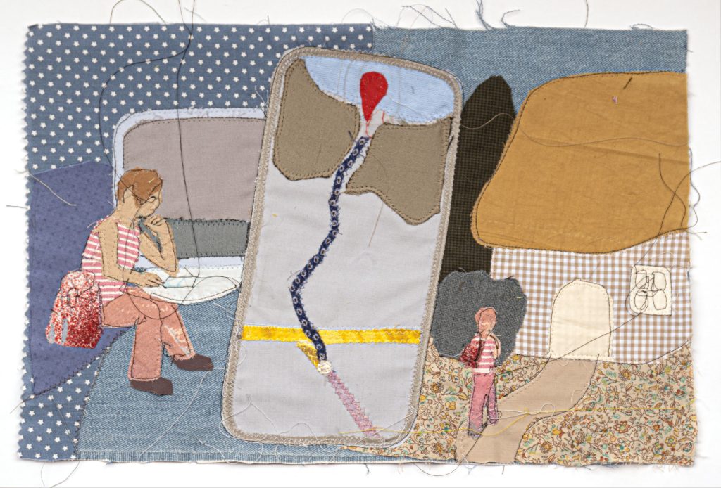 Image: Alina Kopytsia, Lunch Break, 2024, textile collage, 84 x 64 cm